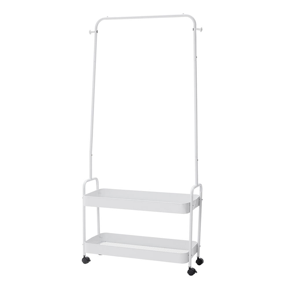 This clothes rack combines style and practicality with a top hanging rod and two spacious baskets. The sleek all-white finish with a glossy coating adds a modern touch to any room. The sturdy top rod is perfect for hanging shirts, suits, and longer garments, keeping them wrinkle-free. The two generous baskets offer flexible storage for folded clothes or shoes, while the side hooks provide a handy place for bags and scarves. Ideal for use in dressing rooms, bedrooms, or bathrooms, this versatile rack keeps your wardrobe organised and accessible.