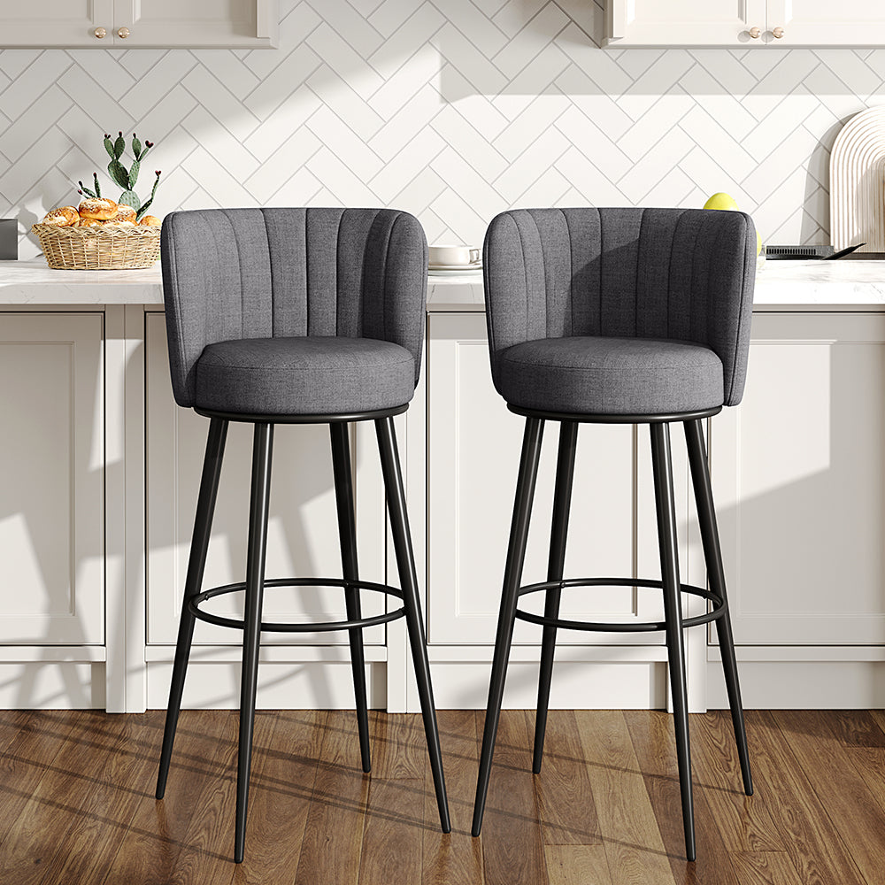 The Pair of Modern Linen Bar Chairs brings a refined modern touch to any kitchen or home bar. Each stool features a sturdy black metal frame and soft linen upholstery with elegant vertical stripes for timeless appeal. Designed with splayed legs for stability and adjustable foot glides for balance, these stools ensure both comfort and practicality. Perfect for morning coffee or evening gatherings, they effortlessly combine durability with contemporary style.