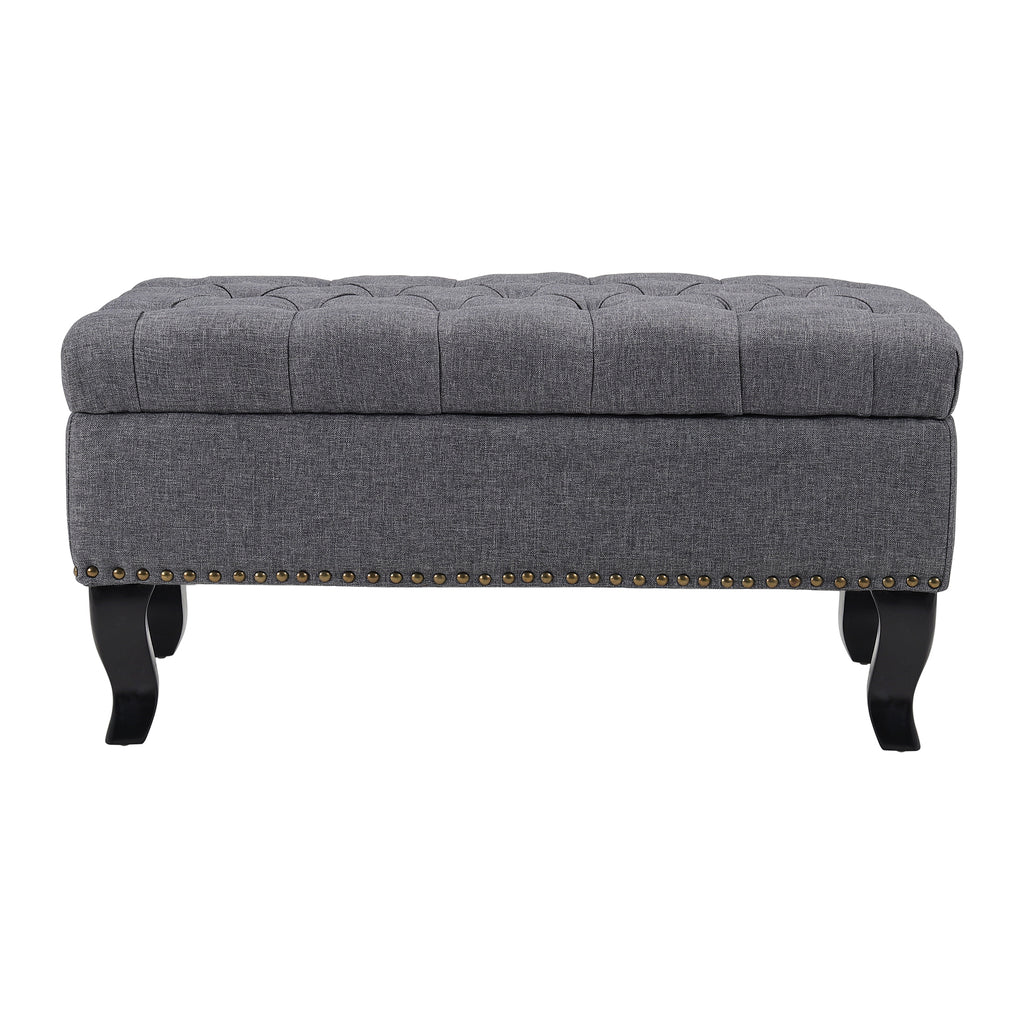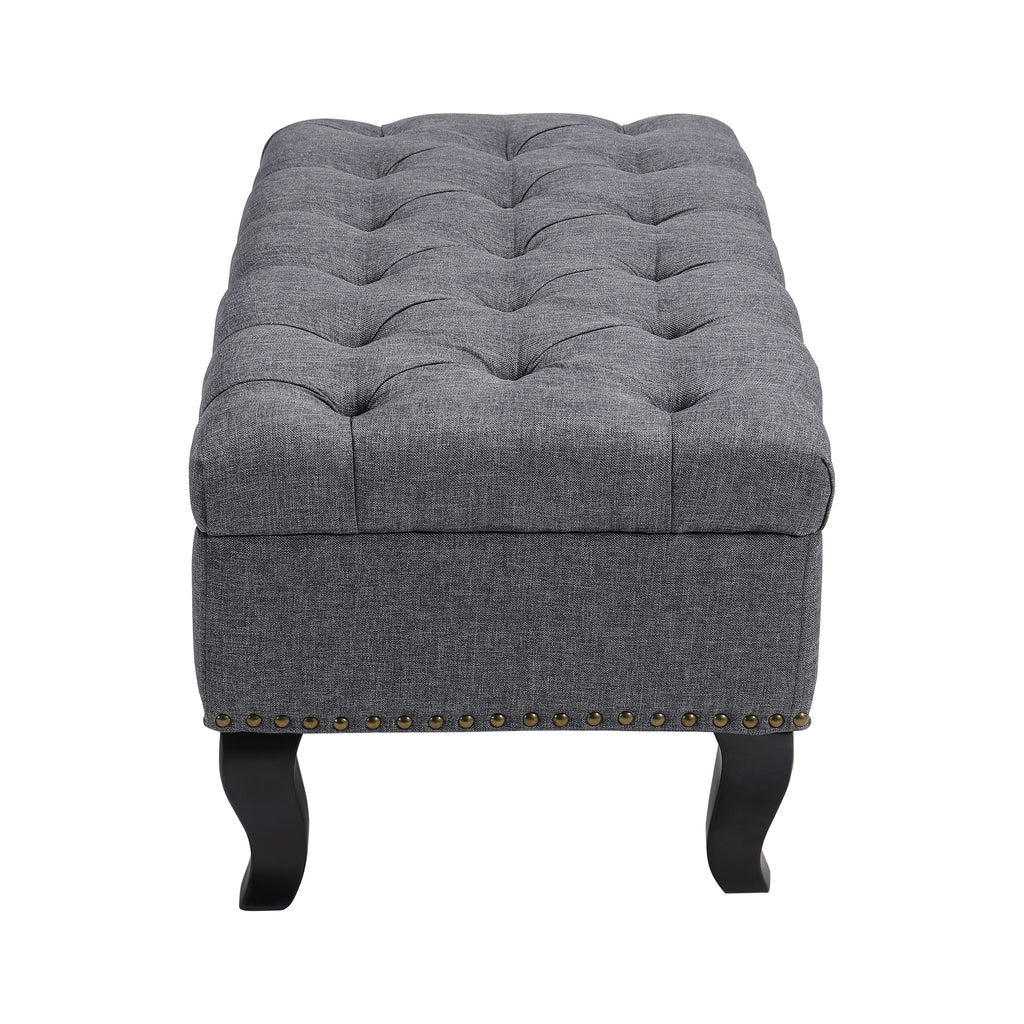 The Rectangle Linen Ottoman Bench combines elegance, comfort, and practicality. Its wide seat accommodates two people, while the deep buttoned linen upholstery with polished nailhead trim adds a touch of traditional luxury. Sturdy rubberwood legs with a unique curved design provide strong support, and the elastic sponge filling offers a soft, comfortable seat. Perfect for living rooms, bedrooms, or hallways, this ottoman bench blends style and functionality seamlessly.