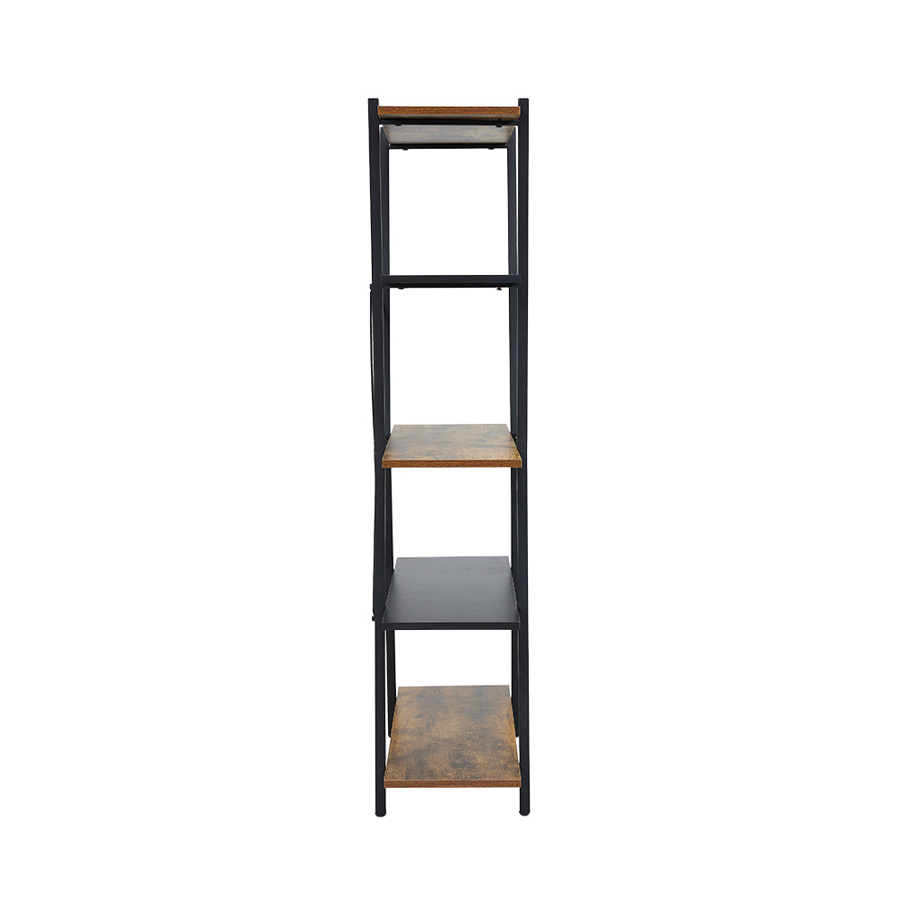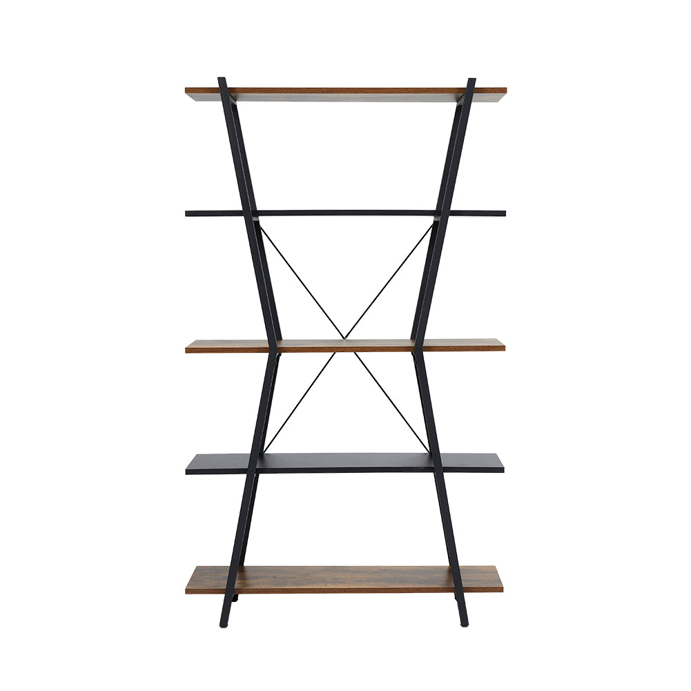 Bring a touch of industrial charm to your space with this Rustic Industrial Metal and Wood Bookshelf. Featuring a sleek black metal "H" bar frame and alternating brown and black particleboard shelves, this bookshelf is both visually striking and highly functional. The five evenly spaced shelves provide ample storage for books, decor, or collectibles, while the open design allows for easy access and display. Durable metal tubing and a stable X-shaped bar ensure long-lasting performance, making it a perfect addition to any modern home or office.