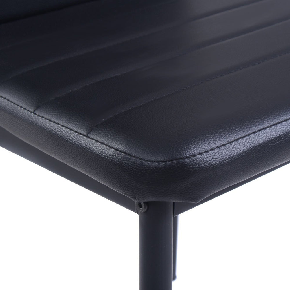 Enhance your dining experience with this Black Faux Leather Dining Chair. Upholstered in durable PU leather with a dense foam cushion and quilted finish, it offers exceptional comfort and breathability. Its sleek armless design and sturdy metal legs make it a perfect addition to any modern dining room.