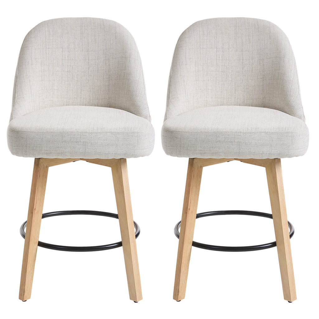 Elevate your seating experience with this 2-Piece Beige Bar Stool Set. Upholstered in soft chenille with elastic sponge filling, each stool offers comfort and support. Natural rustic wooden legs with an all-around footrest provide stability, while the swivel function adds flexibility, making them perfect for bar counters, dining tables, or work areas.