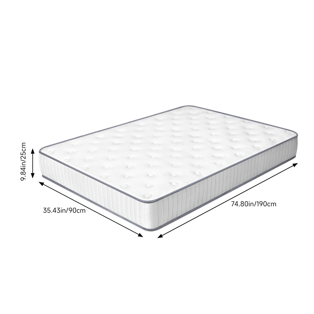 Enjoy restful nights with this Single Pocket Spring Mattress. Featuring a fire-retardant knitted cover and filled with spray-bonded cotton, quilted sponge, and independent pocket springs, it provides excellent comfort and support while relieving pressure on shoulders and hips. Quilting reinforcement and edge support ensure long-lasting durability.