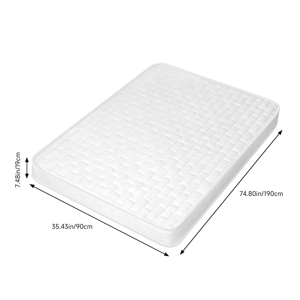 Enjoy a restful night with this premium single mattress, designed for comfort, support, and safety. Featuring a fire-retardant knitted fabric cover, it is soft, skin-friendly, and compliant with UK safety standards. Inside, quilted sponge and standard coil springs provide excellent support, alleviating shoulder and hip pressure. Reinforced quilting and strengthened edges prevent sagging, ensuring long-lasting durability. Vacuum-packed for easy handling, simply unbox and enjoy a restorative sleep.