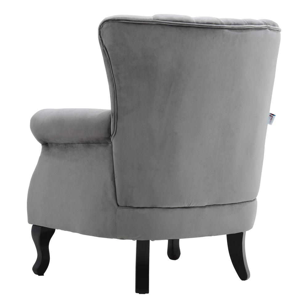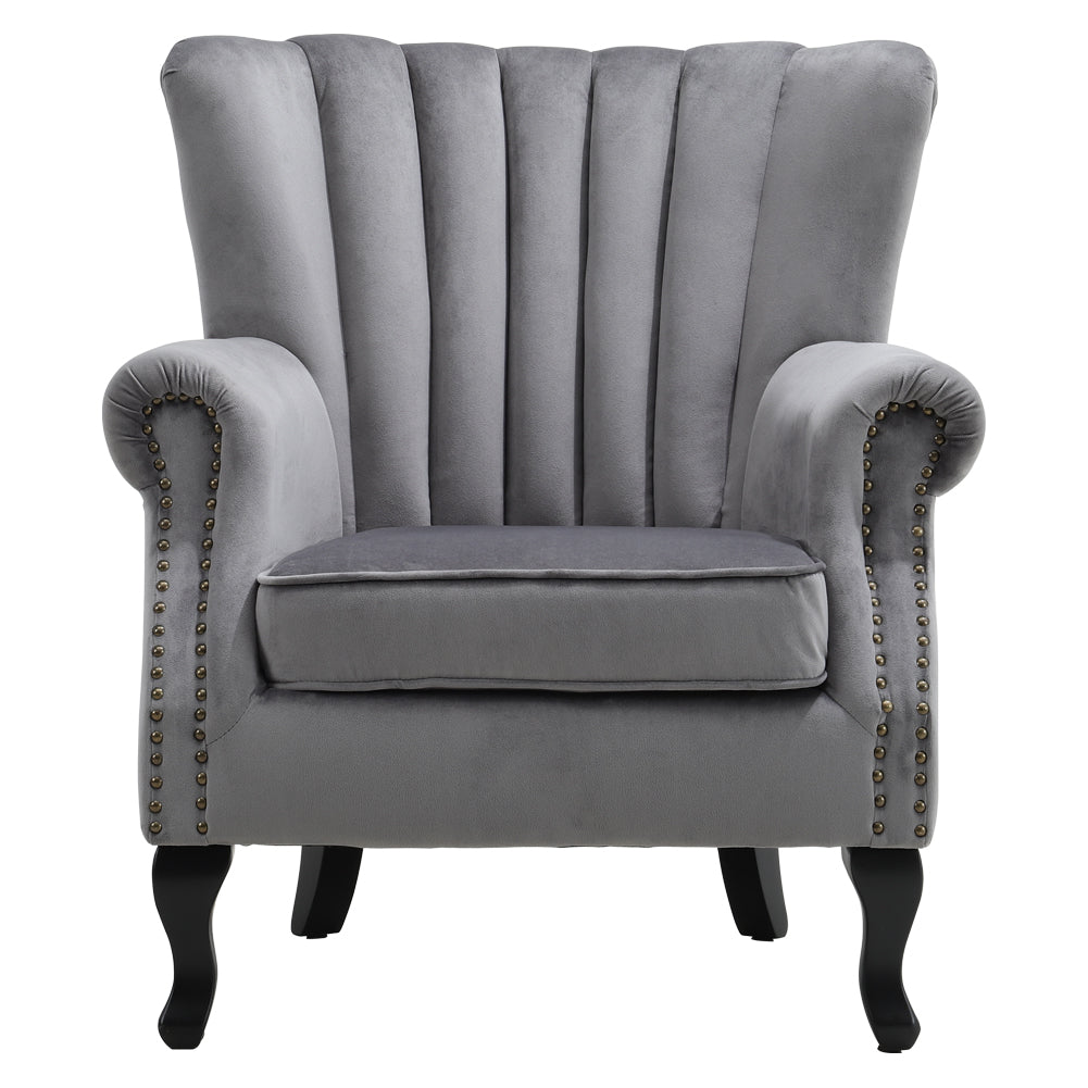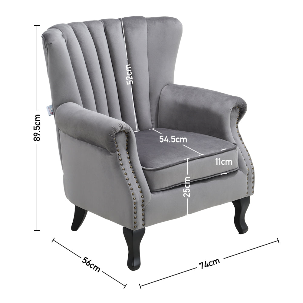The Velvet Wing Back Armchair with Studs adds vintage charm and sophistication to any living space. Its soft velvet upholstery and dense foam cushion provide plush comfort for long periods of sitting. Studded channel tufting on the backrest enhances style while stubby wooden legs offer stability and durability. The waterproof and stain resistant fabric makes maintenance simple and effortless. Perfect for relaxing with a book or entertaining guests, it brings elegance and cosy comfort to your home.