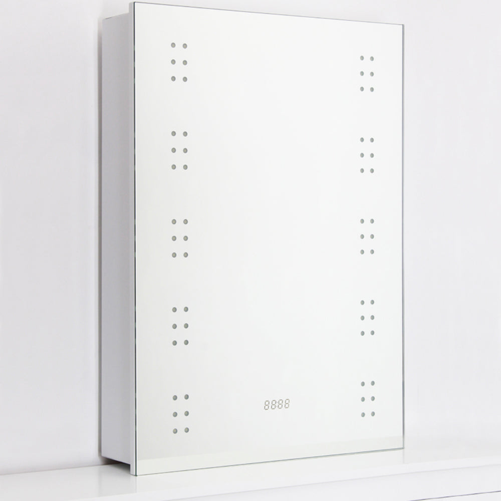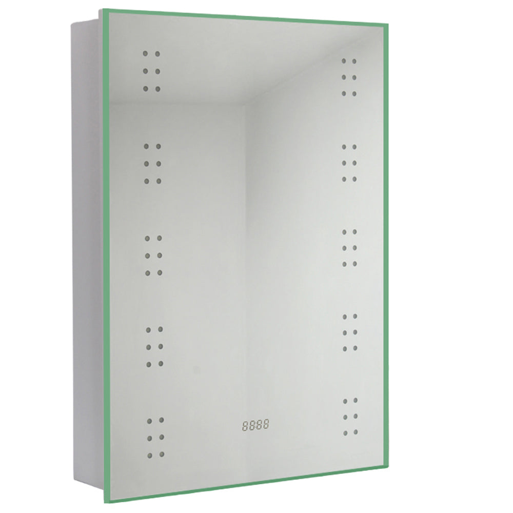Maximise functionality in your bathroom with this LED Mirror Cabinet. Designed with ample storage and two glass shelves, it keeps everyday essentials neatly organised and protected from dust and moisture. The built-in LED lighting, sensor switch, and digital clock make grooming and makeup routines more efficient, while the integrated shaver socket adds extra convenience. Compact yet practical, it is the ideal choice for modern bathrooms.