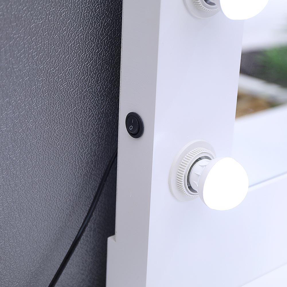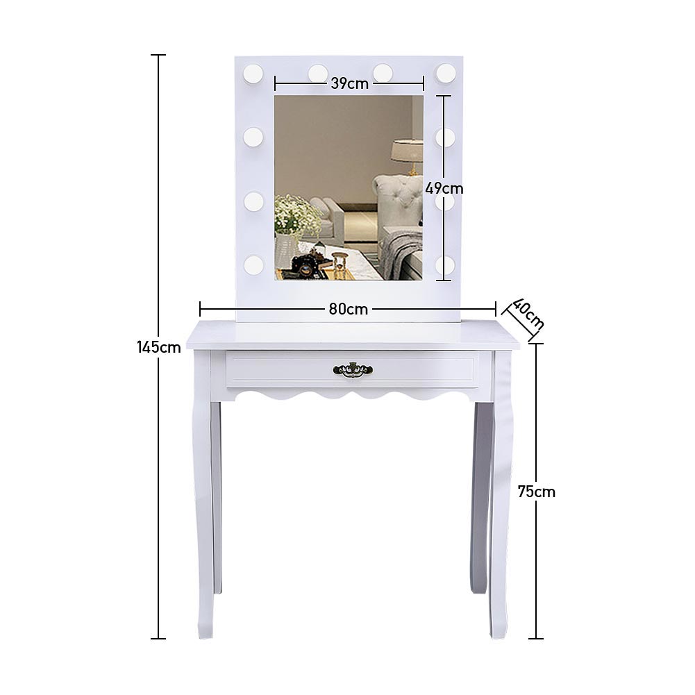 Say goodbye to makeup flaws that can't be seen in a single dull sconce and admire your outfit in the large, round mirror of this dressing table with its 10 light bulbs, oh yes, you look really great. With clean lines, an elegant white table surface, and a large mirror with light bulbs(chair is not included), this makeup table is an ideal gift for your sweetheart, who will certainly not hesitate to fill up their new dressing table.