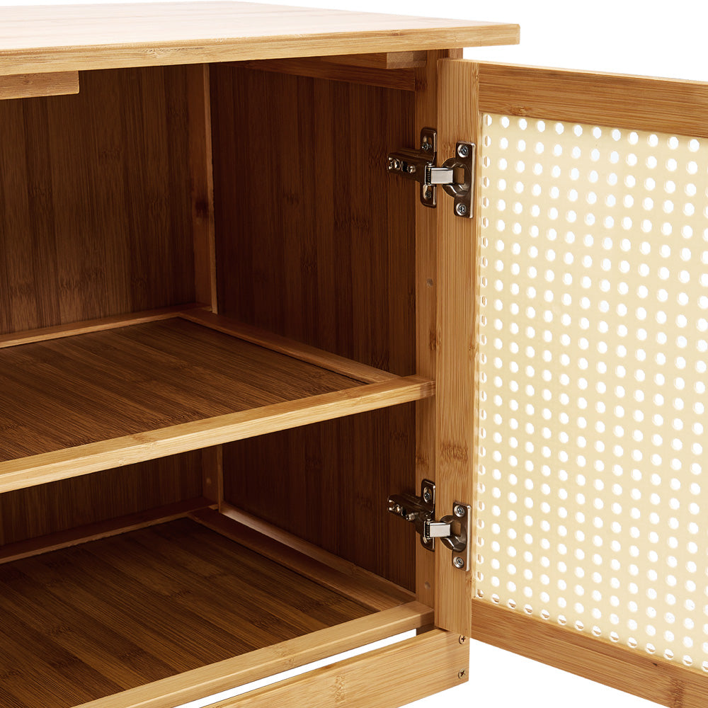 -Ventilated rattan doors keep shoes hidden while allowing proper airflow