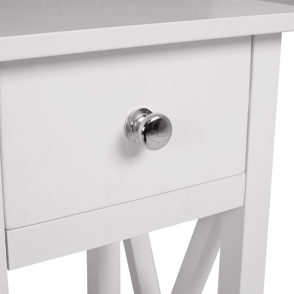 Featuring a refined minimalist design with X-shaped side frames and a slim drawer with a simple round metal handle, this vintage side table adds elegance to your hallway or living space while its compact profile fits neatly against any wall, providing a stylish update and maximising space.