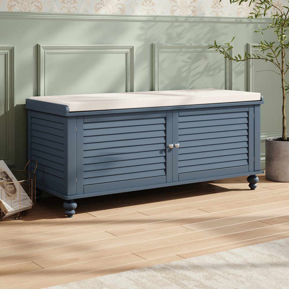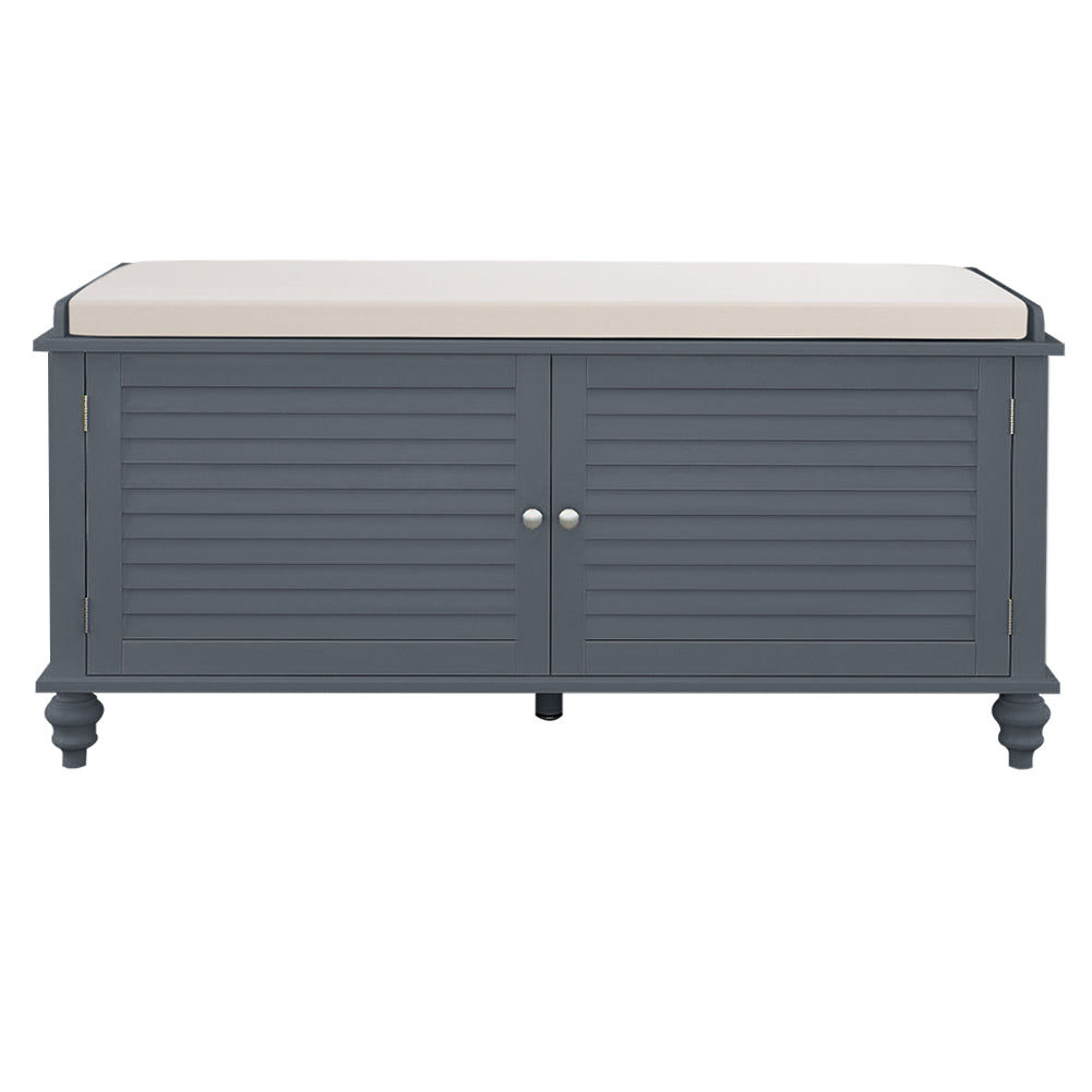 Livingandhome Wooden Shutter Door Shoe Cabinet Storage Bench with Linen Cushion