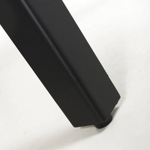 This 1.6m curved edge dining table combines a classic blend of industrial and Scandinavian styles. An appealing bevelled wavy cutout edge runs along both sides of its stain resistant wood effect printed 32mm top. The table is sturdily supported by black powder coated iron legs, complete with adjustable feet. Comfortably seats 4 people. Leg assembly required. Sold individually.