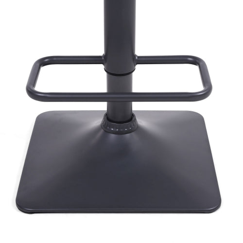 This distinctive swivel bar stool is a real head turner, with its twin tone suede effect fabric, dark grey padded upholstered seat with light grey on the rear. Height adjustable up to 120cm. Supplied with iron grey square base with signature bar footrest. Assembly required. Sold in boxes of 2.