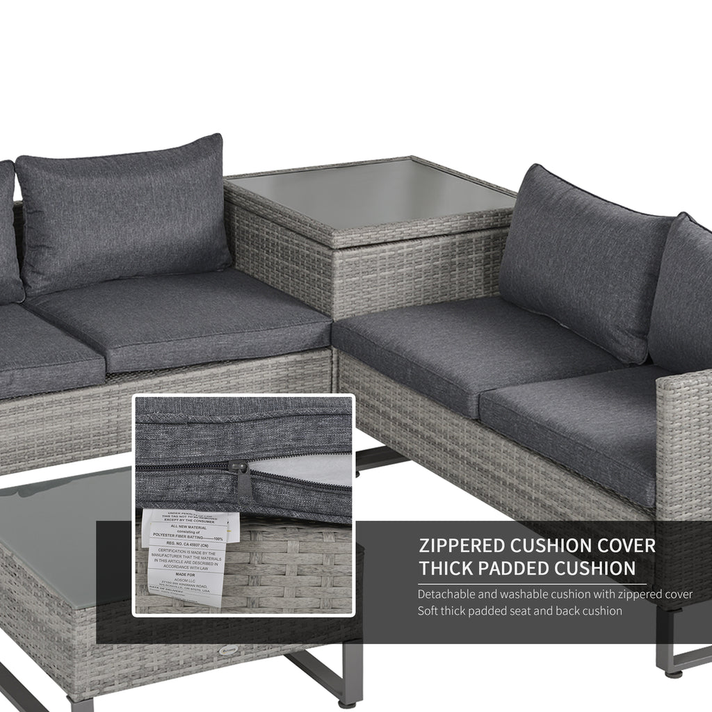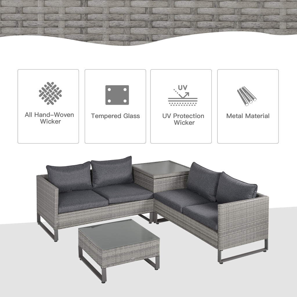 Outsunny 4 PCs Rattan Wicker Sofa Set Conservatory Furniture w/ Side Storage Box