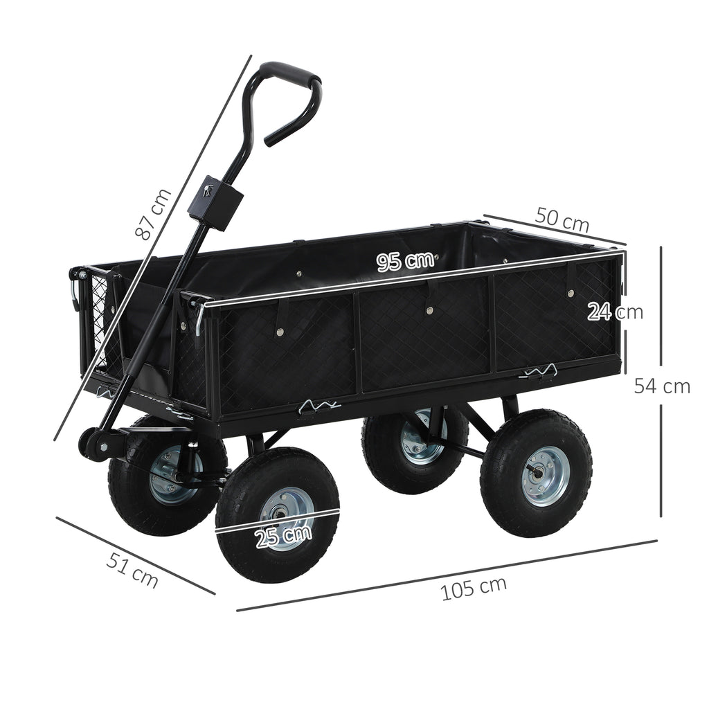 Whatever the gardening, camping or festival load, this Outsunny heavy duty trolley will see you through. The 114L capacity offers plenty of room, with the removable waterproof bag providing protection against outer weather. Made from steel, this is a strong piece, with removable sides to allow easy loading and unloading. Complete with pneumatic rubber tyres for smooth movement.