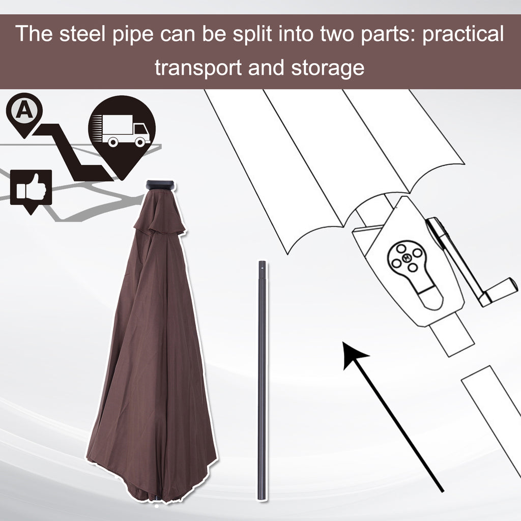 This Outsunny parasol umbrella with lights is a perfect choice to give shade on those sunny days, the deck parasol has the ability to tilt for better protection. It is suitable for your patio, garden, and can be used with existing garden furniture. The steel structure and polyester fabric give support and long-lasting features. The garden umbrella parasol is with solar-powered Led lights with adjustable 4 colours. So when it gets dark you can still continue enjoying the outdoors.• 8 ribs construction with stable support