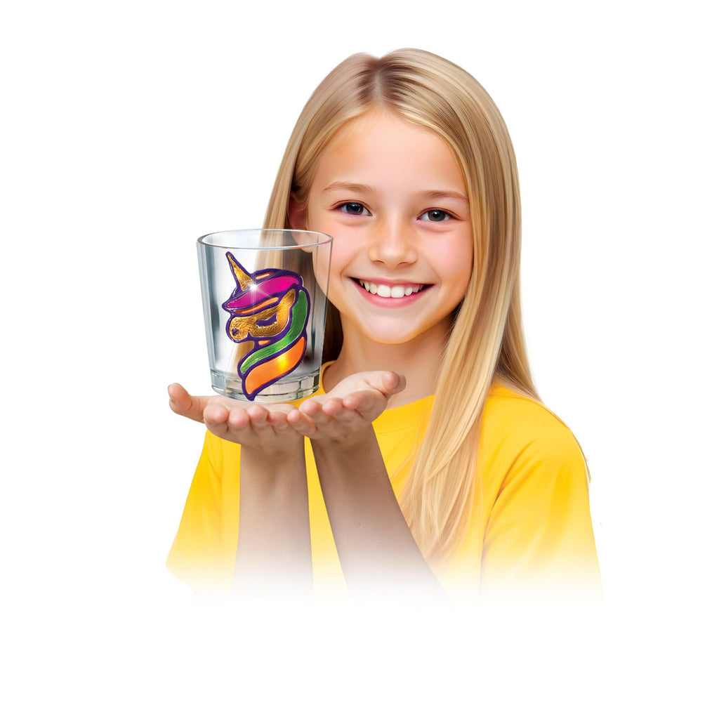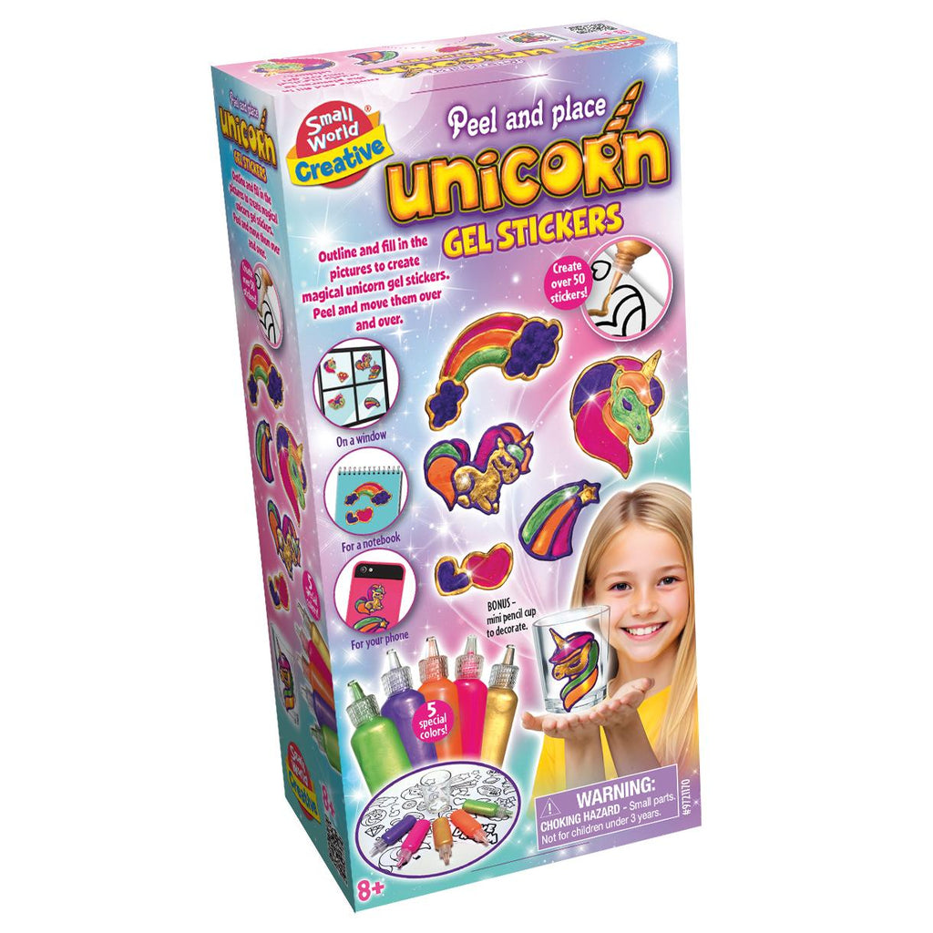 Create your own magical, reusable window clings with the Small World Unicorn Gel Stickers kit. This super fun activity lets you design and make over 50 colourful stickers. Simply trace the designs with the black outliner paint, then fill them in with the vibrant gel colours. Once dry, the designs peel off easily and can be stuck to windows, mirrors, and glasses. The set even includes a cup to decorate! These Unicorn Gel Stickers are a fantastic, creative way to brighten up any smooth surface.
