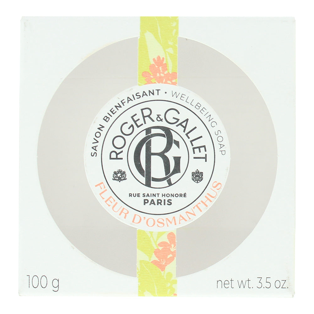 Roger and Gallet Fleur dâ??Osmanthus Perfumed Soap is a luxurious cleansing bar that gently purifies the skin while enveloping it in the elegant, fruity-floral aroma of osmanthus blossoms. Crafted with a plant-based formula and made using the traditional cauldron method, this soap creates a rich, creamy lather that leaves skin soft, smooth, and delicately scented.