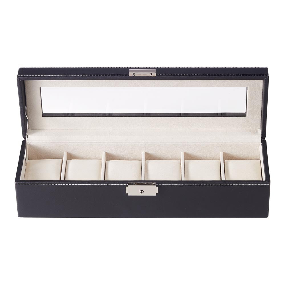 Give your watches the treatment they deserve with this understated watch box. Designed to hold up to six watches, each slot features soft foam padding to maintain the shape of your watch bracelet, while the plush lining prevents scratches on dials and straps. The transparent lid keeps your collection dust-free while elegantly displaying it, making this box perfect for personal use or as a thoughtful gift.