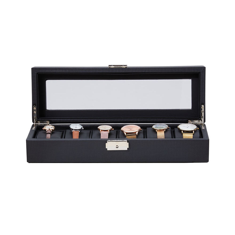 Showcase and protect your luxury watch collection with the Sheonly Watch Display Case. Crafted from waterproof textured leather and sturdy MDF, this elegant box features a transparent glass lid that allows you to admire each timepiece without opening the case. The PU leather interior and thick foam padding keep your watches secure and prevent scratches or deformation. Sleek and understated, this display case provides a sophisticated backdrop, making it perfect for both storage and presentation.