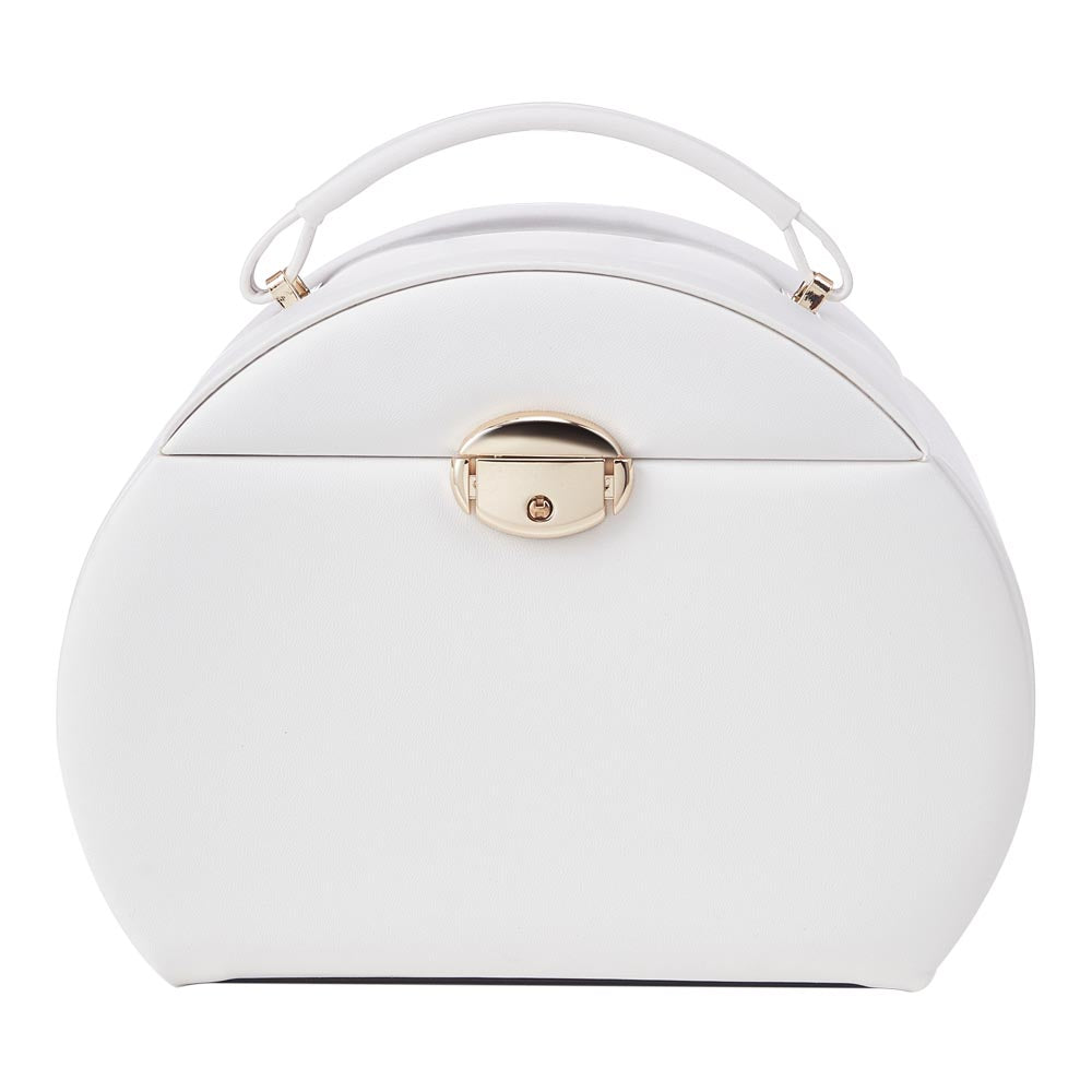 With the appearance of a delicate handbag, this charming jewellery box is perfect for the fashionable and organised individual. Featuring a white PU leather exterior with a pink velvet lining, it exudes a cute yet sophisticated appeal. Designed with two-layer drawers and various compartments of different sizes, including ring slots, it provides ample space to store bracelets, necklaces, earrings, and more. Whether placed on your dressing table or taken along on business trips, this jewellery box ensures your collection is always neatly organised and elegantly presented.