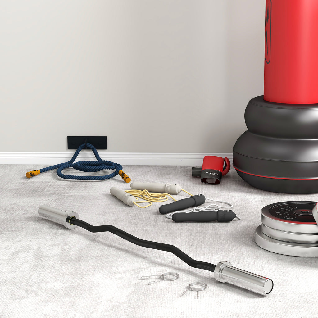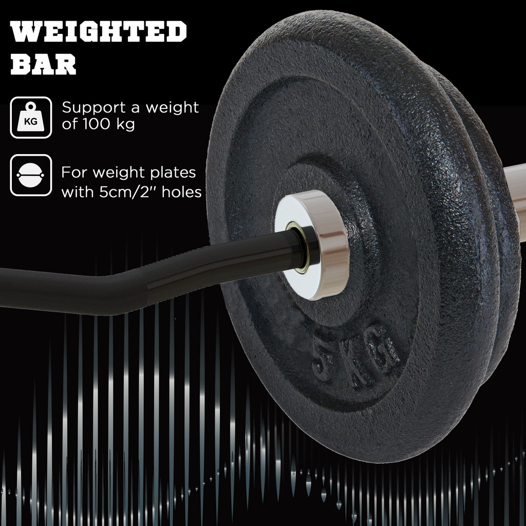 Increase your strength with our SPORTNOW EZ bar. The ideal equipment for bench presses, squats, deadlifts, pendlay rows, military presses and more, ensuring you feel the burn in all muscle groups. Suitable for weight plates with a 5cm hole, it can hold up to 100kg; choose a comfortable weight and get started. Non-slip handles for an excellent grip, whilst the spring clips keep the plates secure, adding safety to your workout. Reach your goals from the comfort of your home.