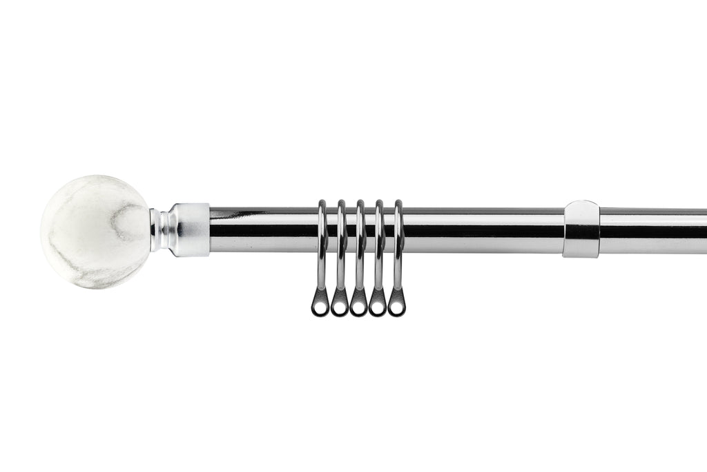 Marble - Extendable Curtain Pole with pair of end finials in Brushed Silver