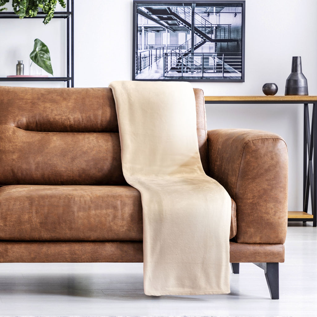 Snug Flannel Fleece Blanket ? Super Soft Throw in Cream