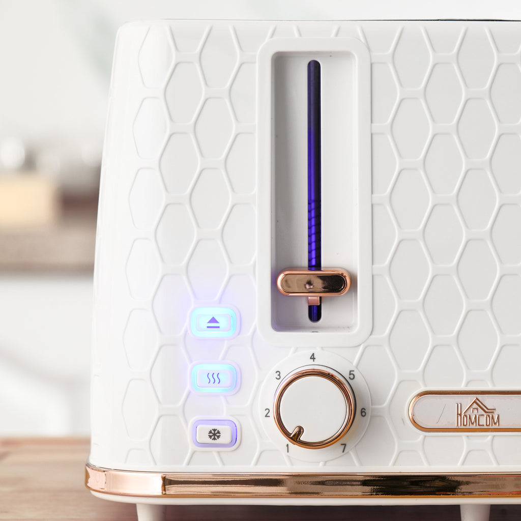 • 1.7L fast boil kettle and matching four-slice toaster. Stylish honeycomb design