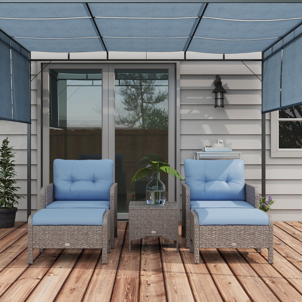 Sit back and relax in complete comfort with this rattan sofa set from Outsunny. Formed of five pieces, features two armchairs, two footstools and a matching coffee table. Made from hand woven PE rattan, with a steel frame underneath for extra support and stability. Thick padded cushions ensure you'll be relaxing comfortably for hours, You can put your feet on the footstool, or use it as an extra seat. This garden sofa set is a fantastic combination, comfortable and minimal hassle.