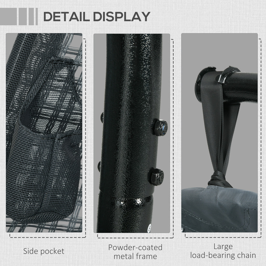 Make the most of your lazy days with this hanging egg chair from Outsunny. The curved back, spacious seat and thick padded cushion offer a comfortable sitting experience. The hanging stand made of steel frame which can solidly hold up to 120kg, giving you complete peace of mind when sitting on it. Easy to store with a foldable seating basket, space-saving and convenient. Infuse elegance into your indoor and outdoor spaces effortlessly with our hanging garden chair.