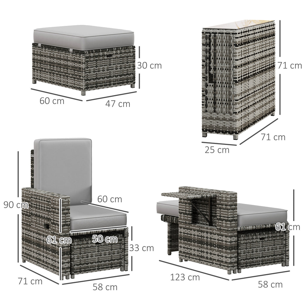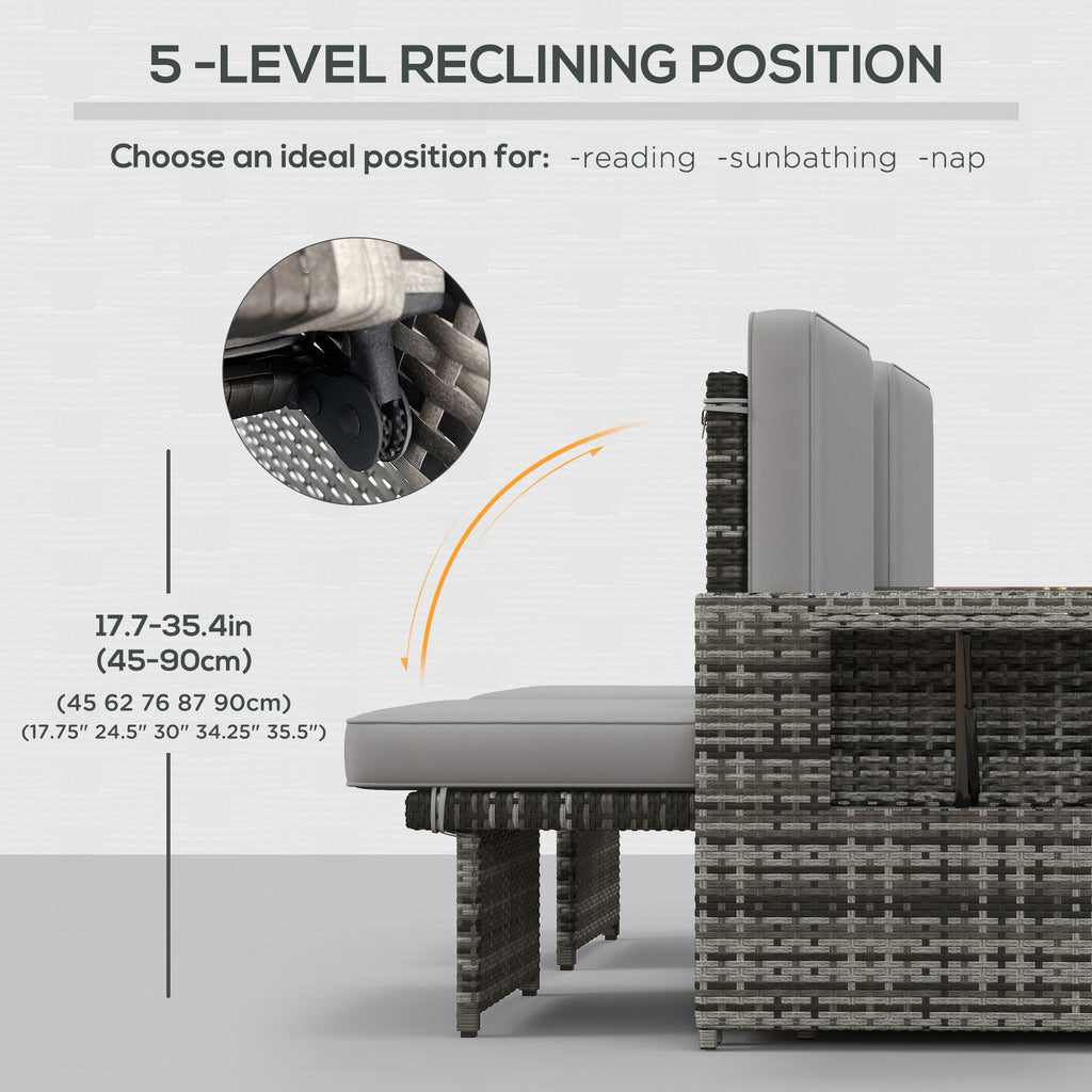 This Outsunny set combines reclining garden furniture, with storage and most importantly, somewhere to relax with a friend. It comes with two reclining chairs, two storage footstools and a tempered glass-top table. Both chairs feature a reclining back: set to five different angles so you can relax the way you want to. A steel frame forms each piece for strong support, wrapped in stylish plastic rattan: a garden-ready look to be used this season and beyond.