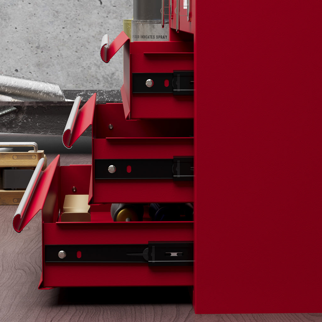 For those who do DIY in and out the home, a carry box is a must: keeping your equipment together and the ability to take them wherever. This DURHAND metal tool box gives you plenty of storage, thanks to the three drawers and top compartment. The ball bearing runners on the drawers make them easy to access - now you can focus fully on the job in hand. It's completed with a top handle, so you can carry where needed easily.