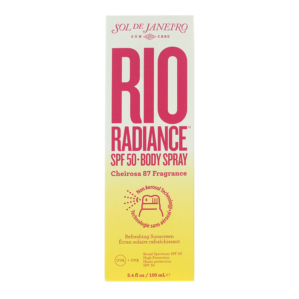 Sol De Janeiro Rio Radiance SPF 50 Body Spray is a vibrant and tropical body spray that combines sun protection with a radiant, intoxicating fragrance. Designed for women, it's perfect for sunny days, beach outings, or any moment you want to glow with a sun-kissed aura. The lightweight formula hydrates the skin while shielding it from harmful UV rays, leaving a luminous finish and a long-lasting, exotic scent.