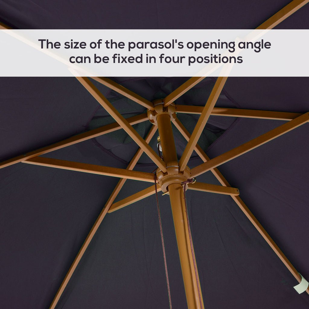 Stylishly make the most of the sun outdoors with this large garden umbrella from Outsunny. Built from wood, the main pole is extremely strong and stable and has been built to last for years to come. Made from 180g/? polyester, the canopy will protect you from sunlight, UV and light rain, making it ideal for sitting out all day long. It's the ideal blend of beauty and functionality.