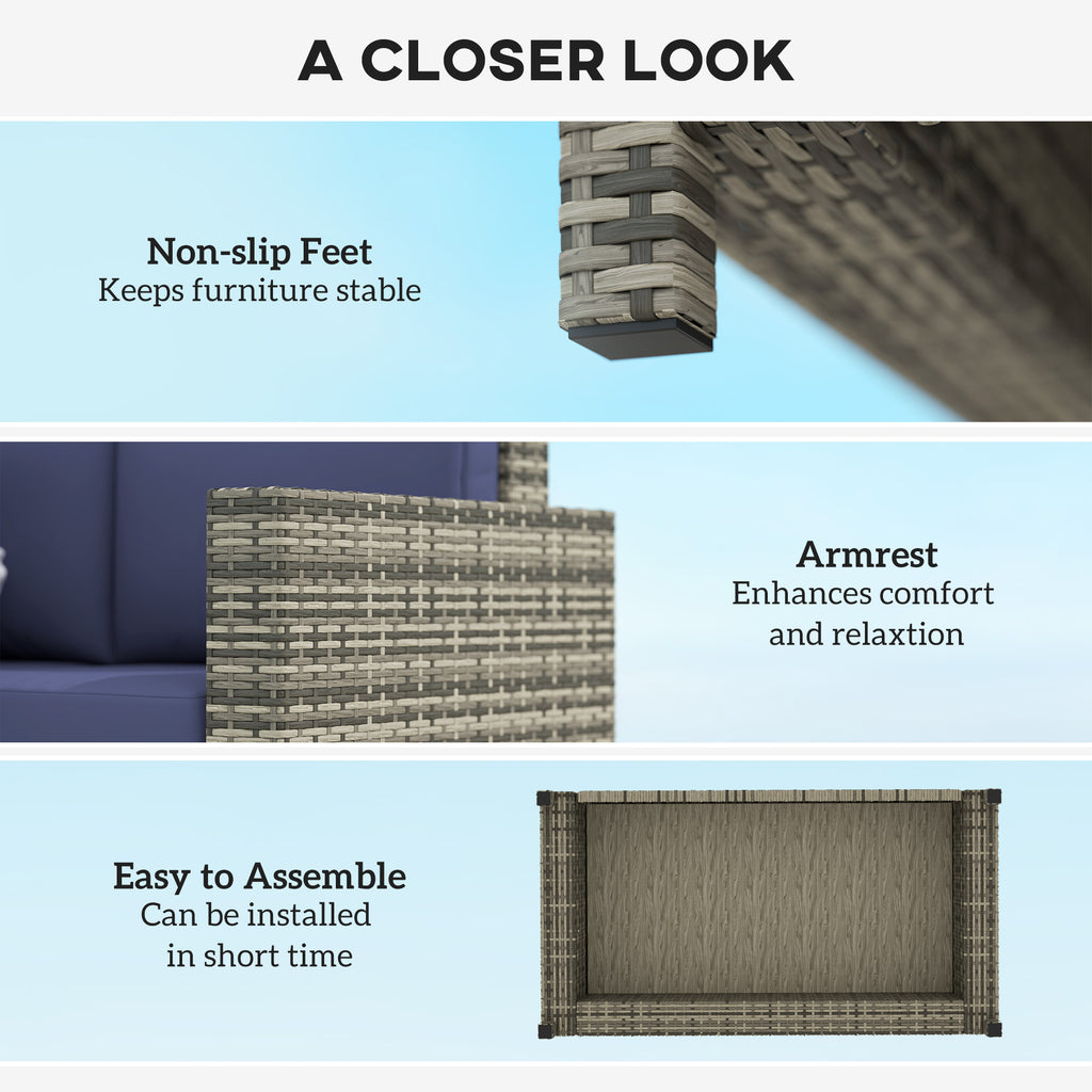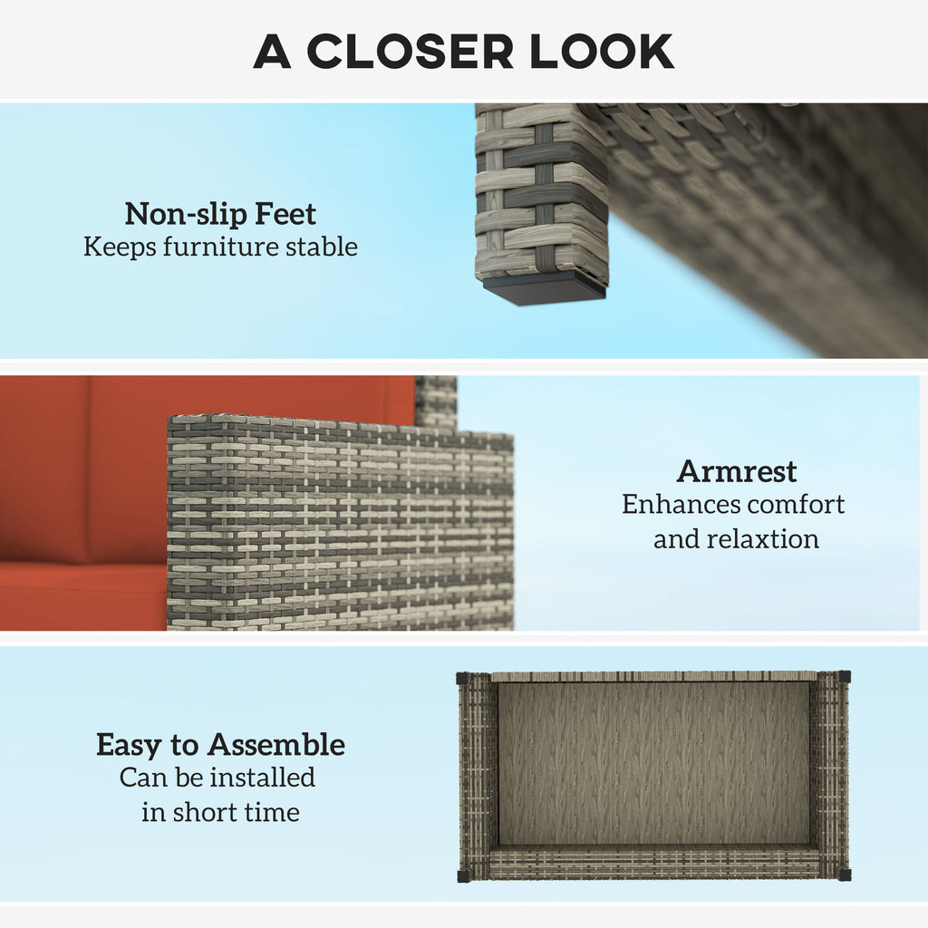 Brighten your garden with the Outsunny rattan loveseat. Made of steel frame to prevent rust and damage outdoors, wrapped in rattan for easy cleaning and is a mainstay in your garden furniture. Come with thick padded and plush cushions, as well as being water-resistant and having washable covers, with a high back and armrests for plenty of support, this outdoor couch is a great way for two persons to sit back and relax in the sun.
