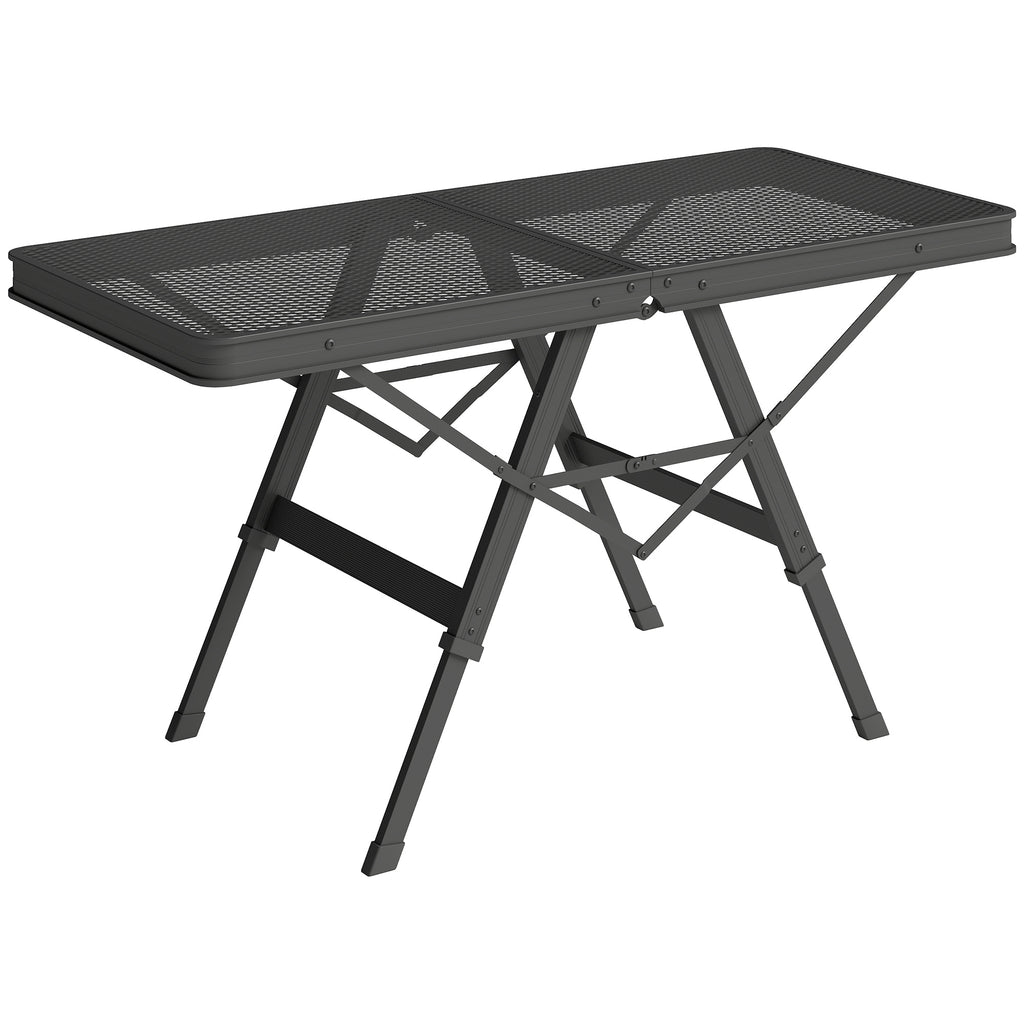Discover the versatility of the Outsunny portable table, featuring a unique metal mesh tabletop that resists rust and water damage. With dual height adjustments (48 cm and 58 cm), this foldable table adapts to your needs, whether as a picnic, bbq, or garden table. Effortlessly set up for any indoor or outdoor occasion and just as easy to store.