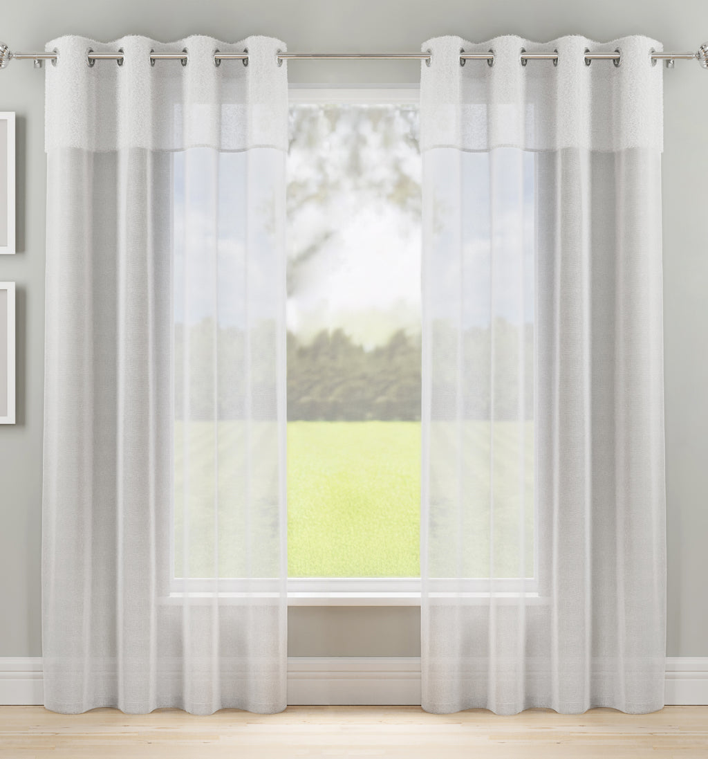 Elevate the ambiance of your space with our Andorra Sheer Textured Header Single Panel. Crafted from a delicate, lightweight fabric, this curtain allows soft natural light to filter through, creating a bright and airy atmosphere while still offering privacy. The texture in the header fabric adds depth and dimension, giving your room a sophisticated, refined look.