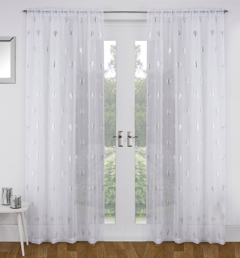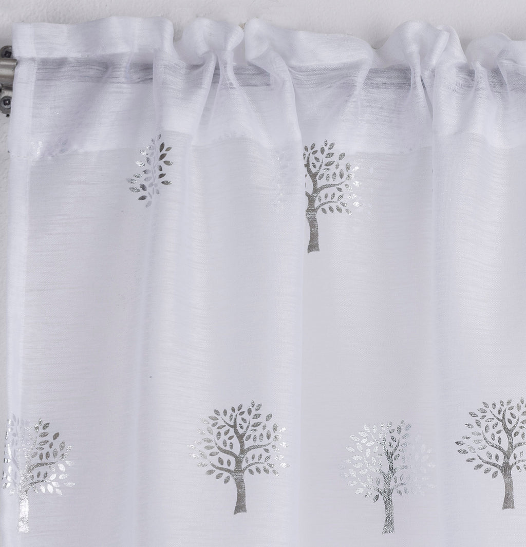 Transform your space with the contemporary elegance of the "Birch" metallic tree print voile panel. Let its captivating design and practical features elevate your home decor to new heights.