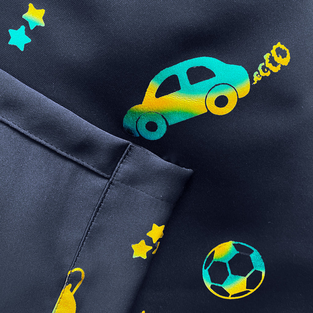 Introducing Infinity, kicking off our brand-new range of kids curtains! Designed to ignite imagination and inspire dreams, Infinity brings the wonders of your child's imagination to life. Incorporating a mesmerising iridescent metallic pattern of planets, footballs, games, and cars to suit a range of hobbies. With room darkening properties these curtains allow for a restful night's sleep while reducing noise and saving on your energy bills. The eyelet heading allows for easy installation effortlessly transformation the room. Check out Charm for a similar pink metallic curtain!