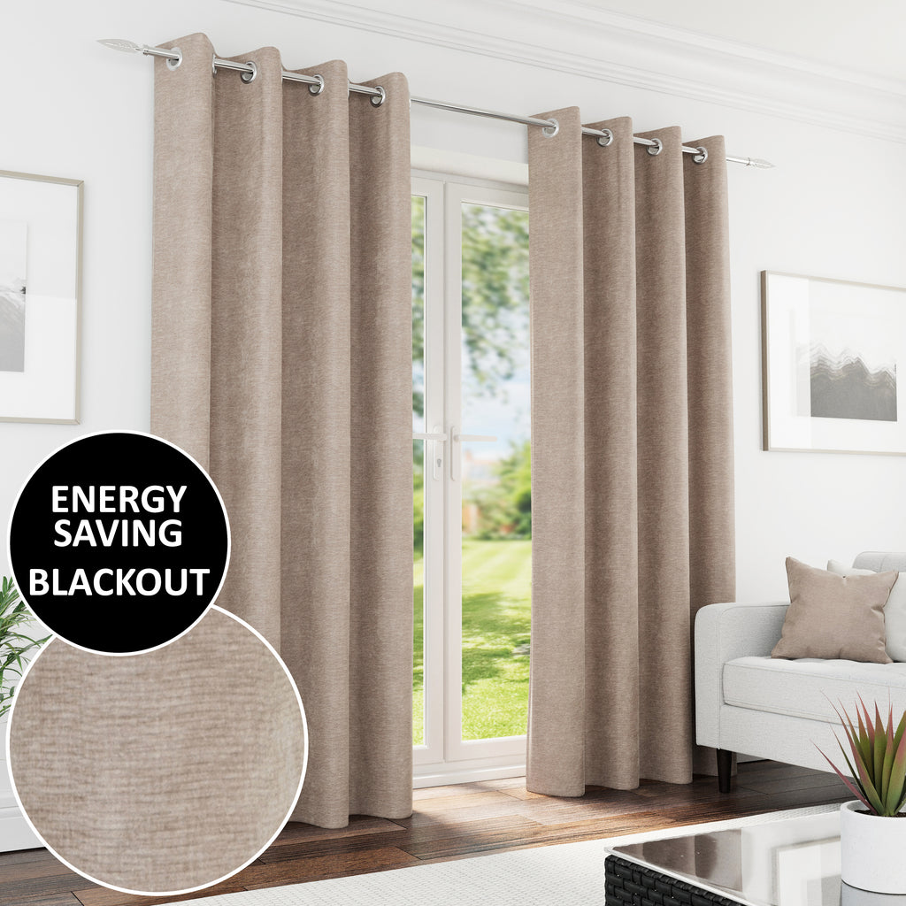 Enhanced Living Knightsbridge 100% Blackout, Thermal Sand Curtains with Eyelet Header - Pair