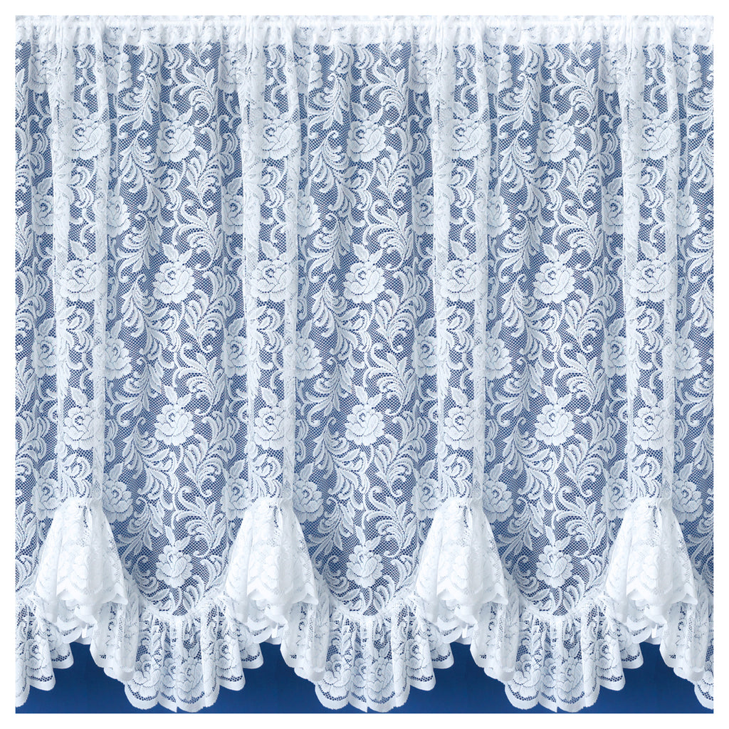 Kew Traditional Floral White Net Curtain Flounce