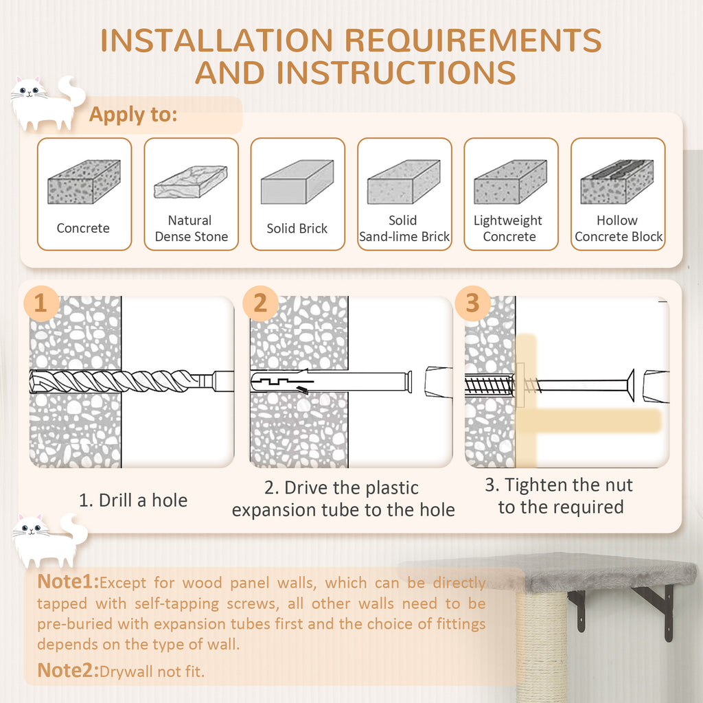 • Wall-mounted design saves floor space, suits cat's natural instincts