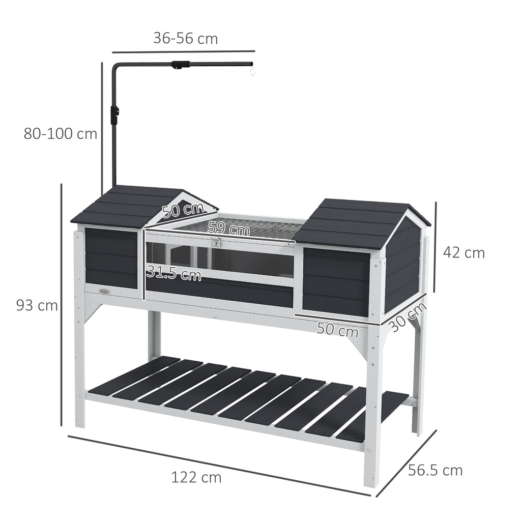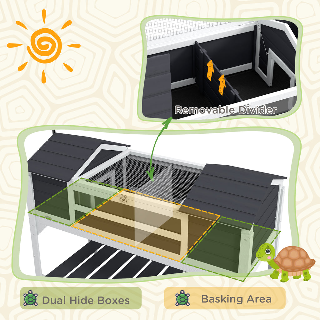 Introduce your tortoise to this charming PawHut outdoor tortoise house. A stable wooden structure, pets will relax in the dual hide boxes, whilst the middle area lets them roam and explore. The clear acrylic window and openable top offer easy access and interaction. Adjust the lamp holder for optimal lighting, getting the temperature just right. A sleek design that fits seamlessly in your home, it's a welcoming abode for pets to thrive and prosper.