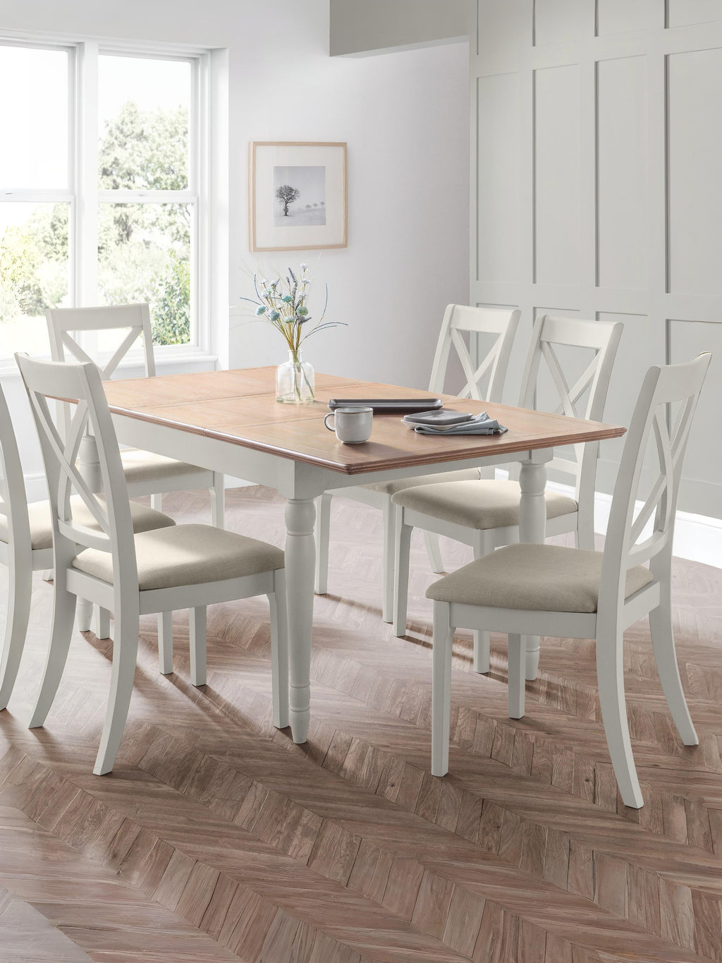 Authentic antique design with a classic turned leg detail perfect for contemporary spaces as well as traditional homes. Finished in a grey lacquer with a limed oak effect top. Easy to use 40cm butterfly extension system allowing the extra room for your dinner guests. This dining table becomes a stunning set when paired with the Provence dining chairs. 12 month product guarantee.