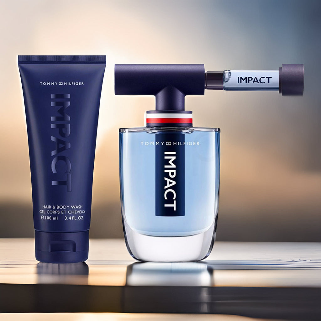 Impact by Tommy Hilfiger is a vibrant Aromatic Fruity fragrance for men, launched in 2020. This scent blends crisp Citruses with rich Woody Notes, Akigalawood, Amber, Cocoa, and Musk, creating a sharp yet balanced woody composition. Its refreshing and energetic character makes it the perfect choice for warm-weather days.