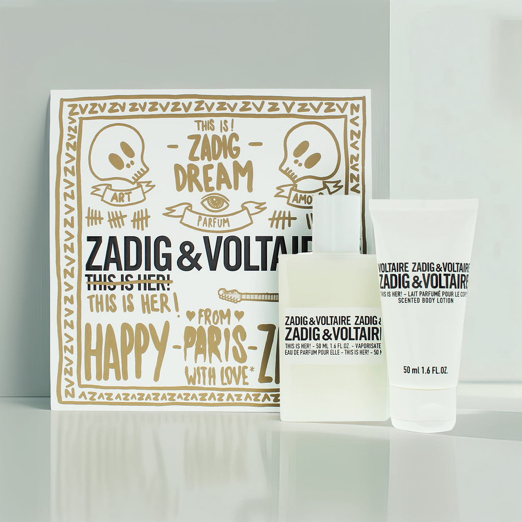 This Is Her, launched in 2016, is an Amber Vanilla fragrance for women by Zadig and Voltaire. Perfect for Fall and Winter, this fragrance is mostly worn during the day. Created by Sidonie Lancesseur and Michel Almairac, this fragrance contains top notes of Pink Pepper, Silkwood Blossom and Jasmine Sambac. Middle notes of this fragrance are Whipped Cream, Vanilla and Chestnut with base notes of Sandalwood and Cashmere Wood. Enriched with the same captivating scent as the Eau de Parfum, the Body Lotion complements the fragrance experience by moisturising and softening the skin. Its lightweight and nourishing formula absorbs quickly, leaving the skin feeling silky-smooth and delicately scented with the irresistible aroma of This Is Her.