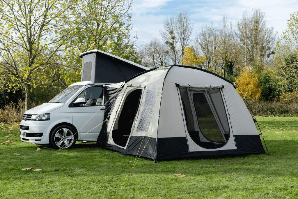 Create a homey extension to your campervan with the Cubo Poled Awning V2. Perfect for life on the campsite, the Cubo is the ideal awning for a quick and easy set-up, while providing you with plenty of space for storage and living. Pitched with two sets of fibreglass poles, the Cubo V2 represents a classic poled geodesic design that effortlessly complements any campervan while offering a versatile living space that caters to your needs. Use it as a dining area, a lounge, or even a sheltered workspace—the possibilities are endless.Made from OLTECH®RE-PRO 210T RPS fabric - repurposed single-use plastic bottles - the Cubo V2 Campervan Awning is a sustainable alternative to most Campervan Awnings on the market. Specifically this campervan awning uses 198 recycled bottles per awning. You can read more about OLPROs unique and sustainable material here. The awning features a dual beading on the tunnel (4mm & 6mm) to fit standard awning rails (fixed or roll out) and can be used on your sliding door or your tailgate/barn doors. You can read more on how to erect a Campervan Awning here. The Cubo Poled Campervan Awning features include: Tension strap on the tunnel Sewn-in Groundsheet Cable entry point Ventilation points Dual beading on the tunnel (4mm & 6mm) Tunnel throw-over straps Bright guy lines included Pegs included Large carry bag Repair kit included Spare pole included Made from: OLTECH® RE-PRO 210T RPS 5,000mm H/H Fibreglass Poles.