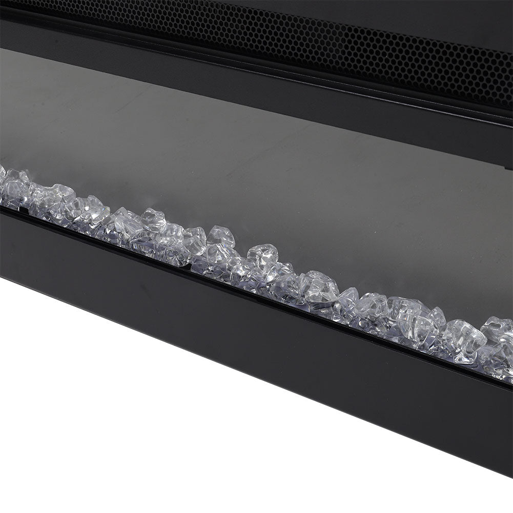 Add warmth and style to your living space with this sleek Electric Fireplace. Featuring nine flame colour options and sparkling crystal accents, it creates a cosy ambience while doubling as a striking focal point. Powerful yet quiet, it delivers efficient heat without smoke or mess. For maximum flexibility, the fireplace can be recessed, wall-mounted, or placed freestanding with the included brackets â?? no complicated installation required.