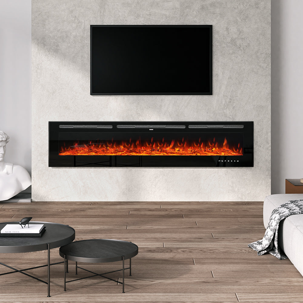 Elevate the comfort and style of your home with this sleek, modern Electric Fireplace. Designed to replicate the warmth and glow of a real fire, it features 12 flame colours, adjustable brightness, and a choice of artificial log or crystal ember beds, allowing you to create the perfect ambience for any room. Its elegant black finish seamlessly complements a variety of interior styles.
