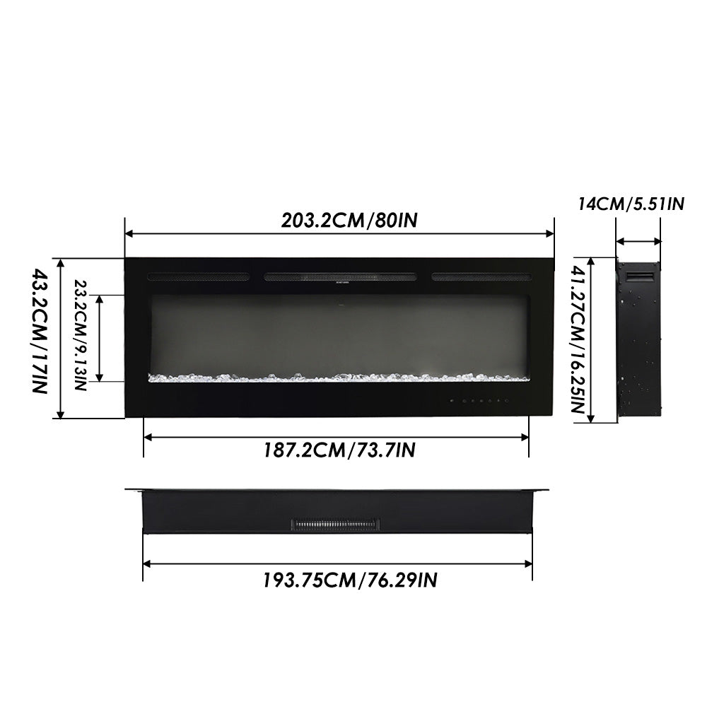 Recessed/Wall Mounted Electric Fireplace Adjustable Flame with Remote